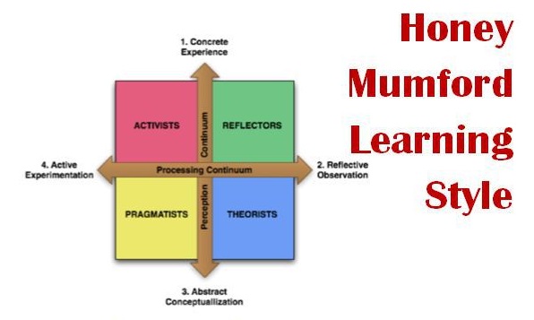 The work and publications of Peter Honey and Alan Mumford have produced a method of exploring the individual's learning style. (The Manual of Learning Styles, P Honey an A Mumford, P Honey Publications, Maidenhead 1992). The questionnaire published in the manual enables the learner to determine their learning style, compare their results with the accumulated results of many thousands, and explore their preferred ways of learning. When describing the styles they use the terms activist, reflector, theorist and pragmatist, corresponding with Kolb's concrete experience, reflective observation, abstract conceptualisation and active experimentation.